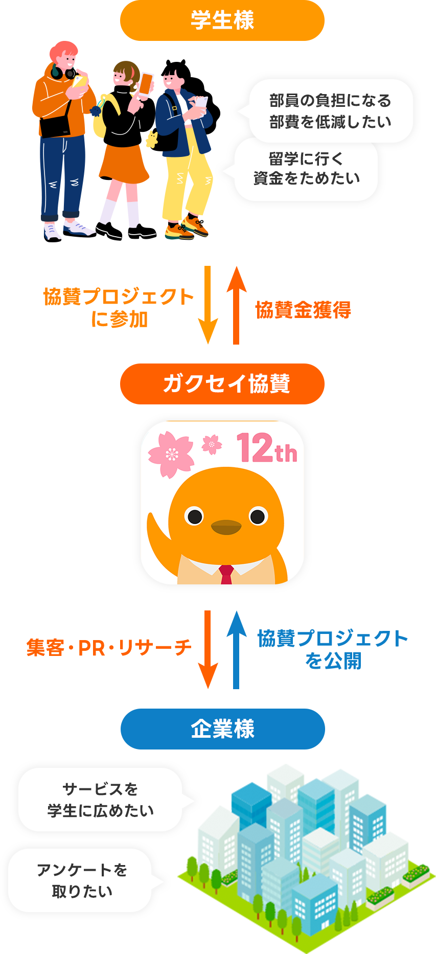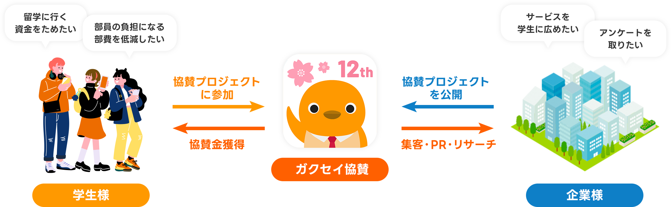 ガクセイ協賛は、すべての大学生が安心して活動資金を得られる協賛プラットフォームを目指しています。