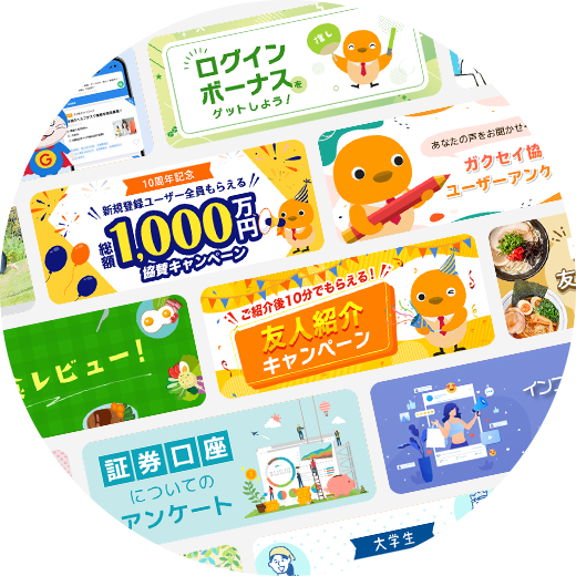 「ガクセイ協賛」で、サークル・部活動の部費・サークル費用などの活動資金の悩みを解決できます! ※体験談は利用者の感想であり、利用状況や参加案件により得られる謝礼額は異なります。
